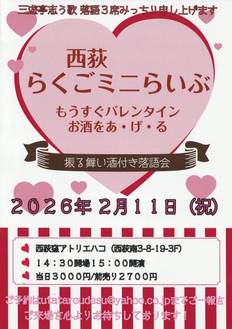 - 02月11日(水) 東京都 西荻らくごミニらいぶ アトリエハコ 14:30開場