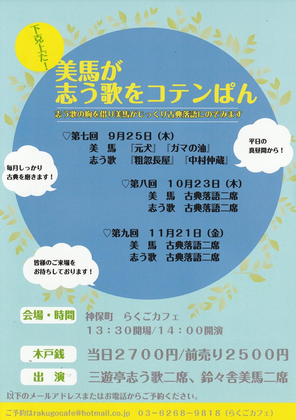 - ご予約:らくごカフェ